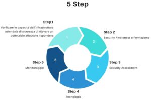 Vai alla pagina del nostro sito dedicata al percorso sicurezza: 5 Step che consentono di organizzare, integrare e consolidare la difesa degli asset aziendali.